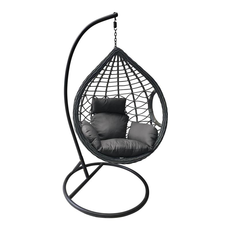 Κρεμαστή Πολυθρόνα μονή Steel & Wicker γκρί, Μαξιλάρι γκρι Φ105 Χ197(Υ) εκ