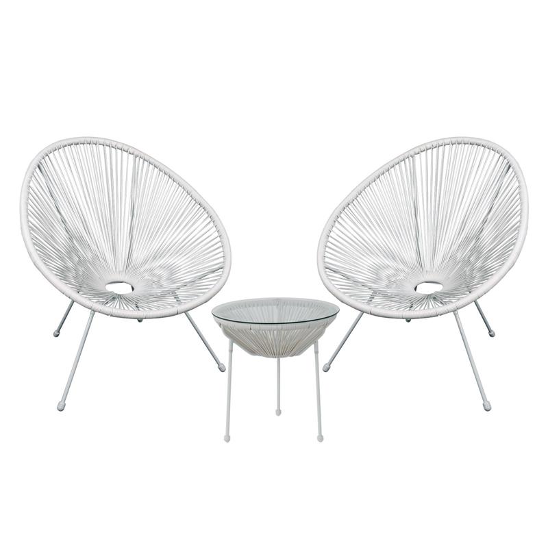 Σετ Εξ. Χώρου - 2 πολυθρόνες (73(Π) X76(Μ) X89(Υ) εκ) - τραπεζάκι (Φ50 Χ50(Υ) εκ) - Μέταλλο & ratan άσπρο.
