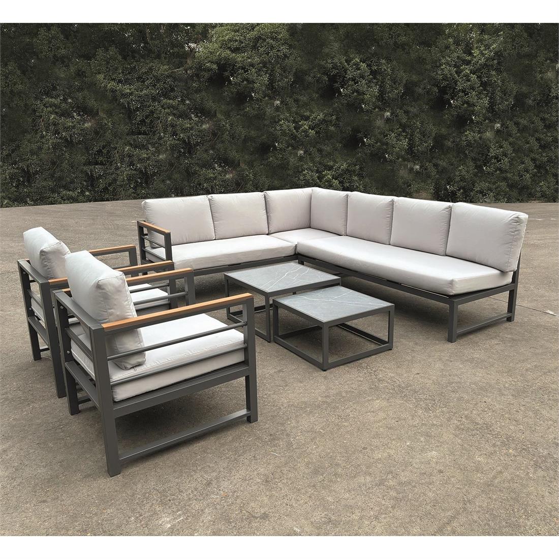 Set Σαλόνι Κήπου, Πολυμορφικό 6τεμ, Μέταλλο Βαφή Ανθρακί, Μαξιλάρια Γκρι / 1τεμ Καναπές (χωρίς μπράτσα) (174 x 70 x 63 cm) - 1τεμ Καναπές με ρυθμιζόμενη πλάτη (190 x 70 x 63 cm) (Μπράτσα Polywood) - 2τεμ Πολυθρόνες (66 x 70 x 63 cm) (Μπράτσα Polywood) - 1τεμ Τραπεζάκι (62 x 62 x 35 cm) - 1τεμ Τραπεζάκι (56 x 56 x 30 cm)