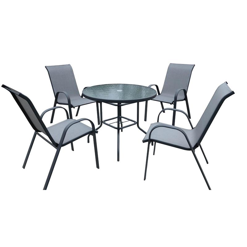 Σετ τραπέζι ανθρακί Φ100χ70 + 4 πολυθρόνες ανθρακί 56(M)x73(Π)x93(Y)εκ