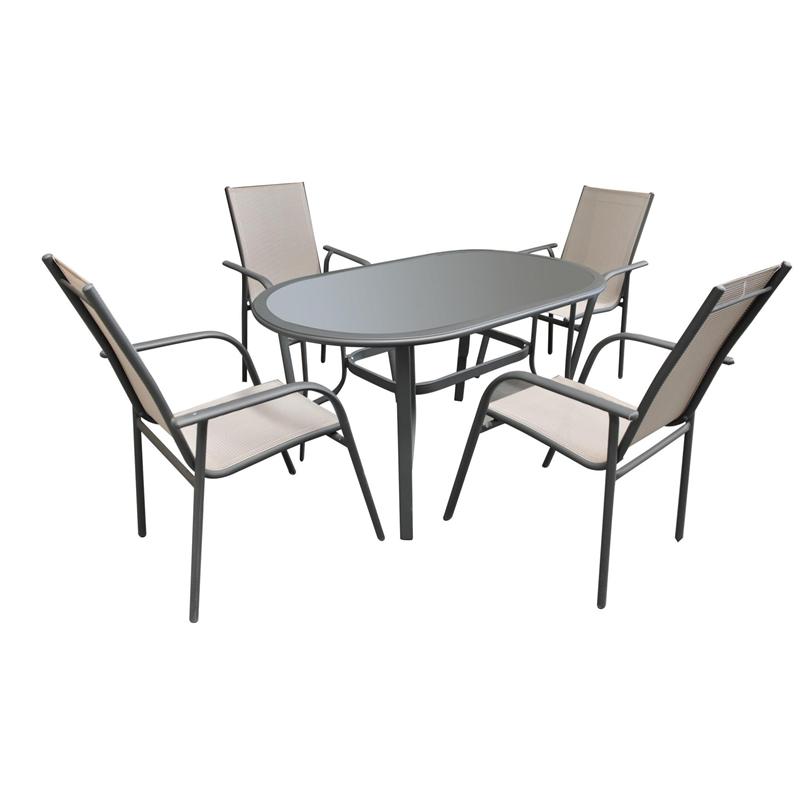 Σετ τραπεζι alu oval ανθρακί 140(M)x80()x71(Y) + 4 πολυθρόνες textilene καφέ 58(M)x65(Π)x95(Y)εκ