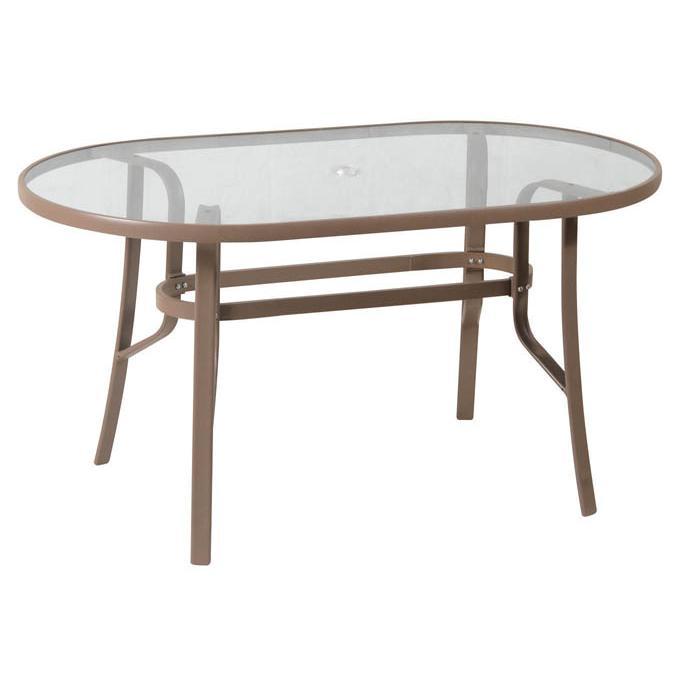 Τραπέζι οβάλ αλουμινίου με τζάμι και μεταλλικά πόδια 70(Π)X120(M)X75(Y) εκ