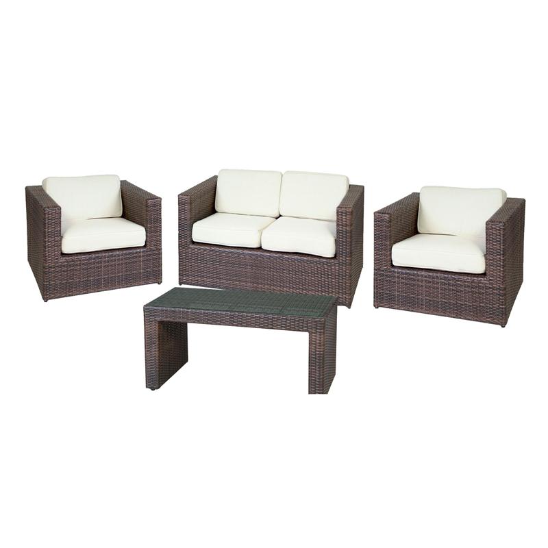 Σετ σαλόνι (2θ καναπές-2 πολυθρόνες-τραπεζάκι)alu-rocky brown wicker μαξιλάρι εκρού