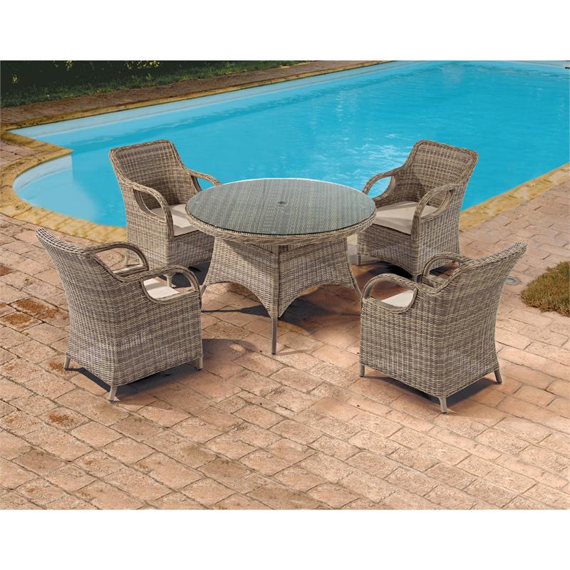 Καθιστικό σετ 5 τεμ. Rattan Τραπέζι στρογγυλό με τζάμι-Rattan 120ØΧ75(Υ) εκ Πολυθρόνα 60(Π)X72,5(M)X90(Y) εκ (περιλαμβάνονται τα μαξιλάρια)