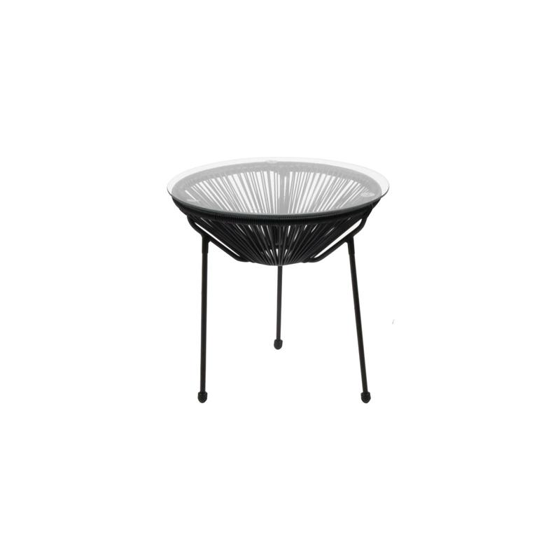 Τραπέζι Μεταλλικό Μαύρo, Plastic Rattan Μαύρο Φ50 Χ50(Υ) εκ