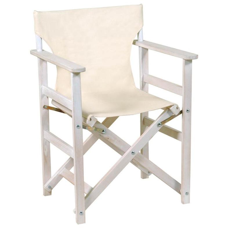 Πολυθρόνα σκηνοθέτη πτυσσόμενη λευκή πατίνα ειδικής επεξεργασίας για εξωτερική χρήση 55(Π)X52(M)X85(Y) εκ