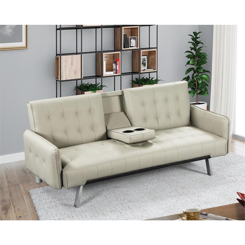 Καναπές -κρεβάτι μπεζ PU / Καναπές 188(M) X82(Π) X80(Y) εκ - Κρεβάτι 168(M) Χ100(Π) X36(Y) εκ