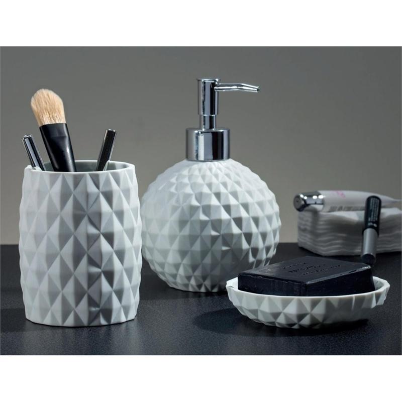 Σετ dispenser και ποτήρι και σαπουνοθήκη πορσελάνη diamond (dispenser 11X16 ποτήρι 7,5Χ10,5 )