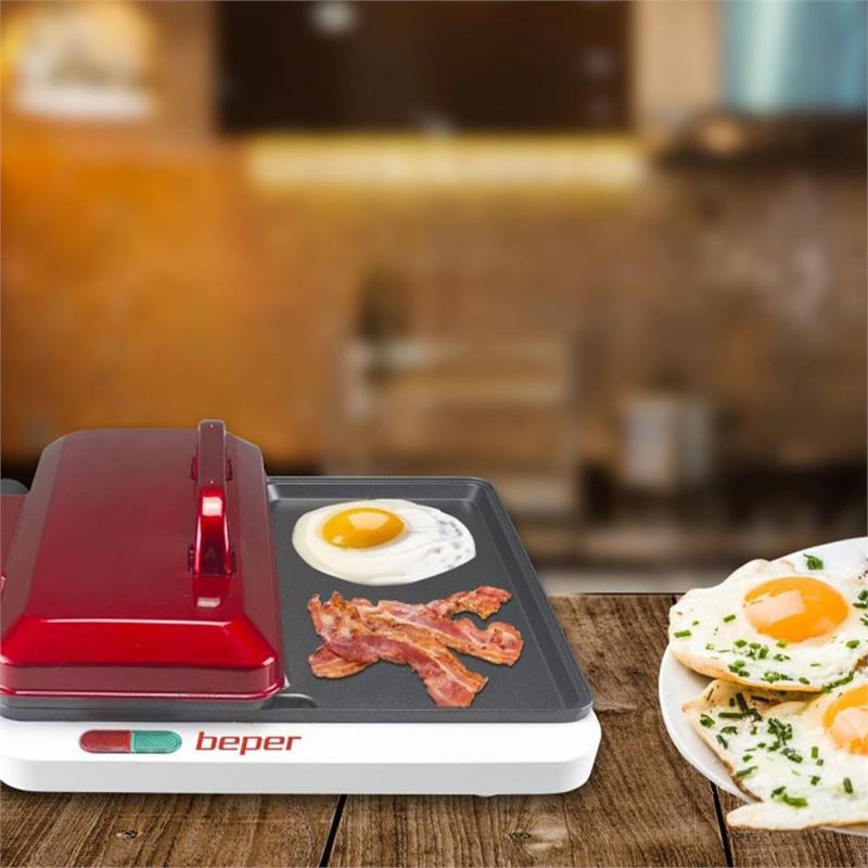 Είναι εξοπλισμένη με λυχνία ένδειξης λειτουργίας και λυχνία επίτευξης θερμοκρασίας. Η αποθήκευση καλωδίου θα εξοικονομήσει χώρο κατά την αποθήκευση. Και επειδή η ασφάλεια στην Beper παίζει βασικό ρόλο, τα αντιολισθητικά πόδια εγγυώνται σταθερότητα κατά τη χρήση για αποφυγή ατυχημάτων.