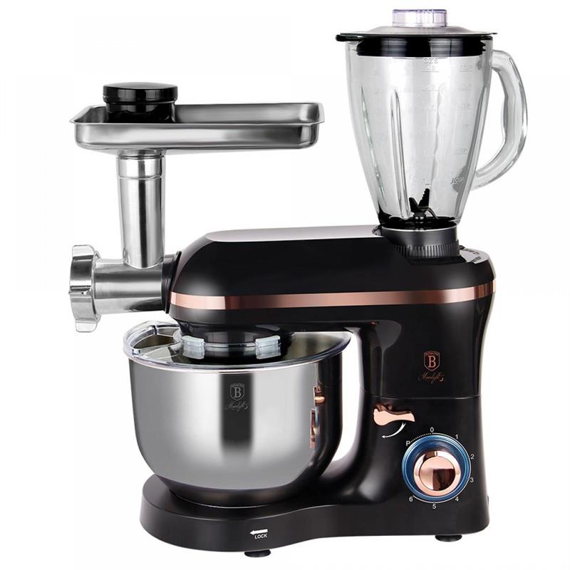 The unparalleled style in flawless metallic color with details in pink-gold is combined with the high 1400W power output in the Kitchen Machine - Mixer - Meat Machine of the Black Rose Collection series.