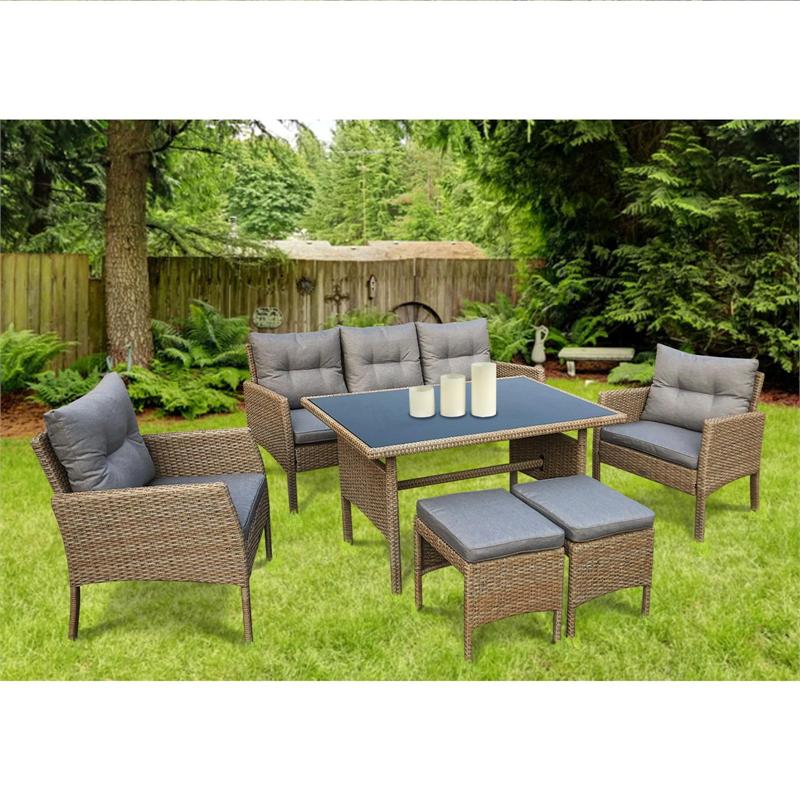 Dinning or coffee Set (3S couch - 2 armchairs - table -2 stools + cushions) twin wicker natural - cushions grey. Dimensions at the last picture.