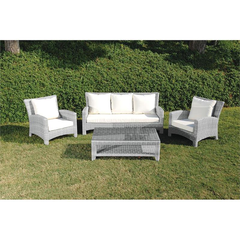 Set 4 pcs L. Gray 3s sofa + coffee table + 2 armchairs Rattan / alu